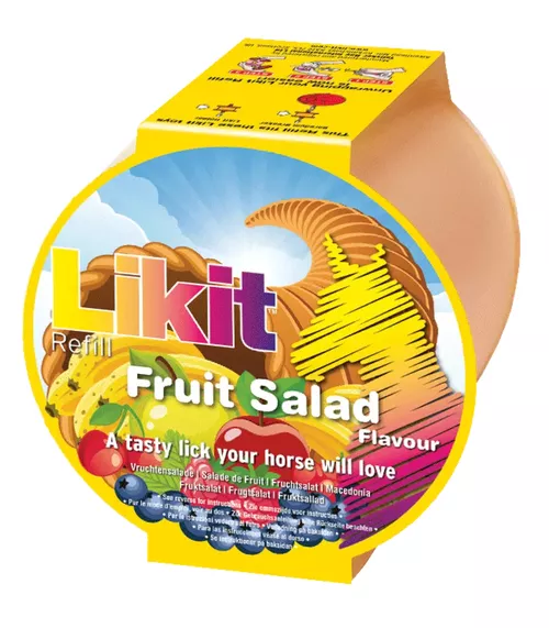 Náplň do držáku LIKIT. Melasovaná pochutina s různými druhy příchutí. U koní velice oblíbený pamlsek a hračka. Vhodné pro zabavení v boxe nebo ve výběhu. PŘÍCHUTĚ:jablko (zelená), mrkev (oranžová), třešeň (cherry), mix příchutí (mix), med + heřmánek (medová), banánová (žlutá) SKLADEM - jablko, banán, třešeň, mix; ostatní na objednání s dodáním do 14 dnů